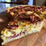 Pour servir cette tarte, j’adore l’accompagner d’une simple salade verte bien croquante avec une vinaigrette moutardée – le contraste est juste parfait ! Si vous recevez, ajoutez quelques cornichons et olives pour faire joli. Conservation ? Couvrez-la de papier aluminium et gardez-la au frigo jusqu’à 2 jours. Pour la réchauffer, 10 minutes à 160°C et c’est comme neuve ! (Mais entre nous, elle est aussi délicieuse froide, directement dans le frigo à minuit… je ne juge pas !)